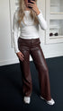 Mira Straight Leather Pants Brown 317